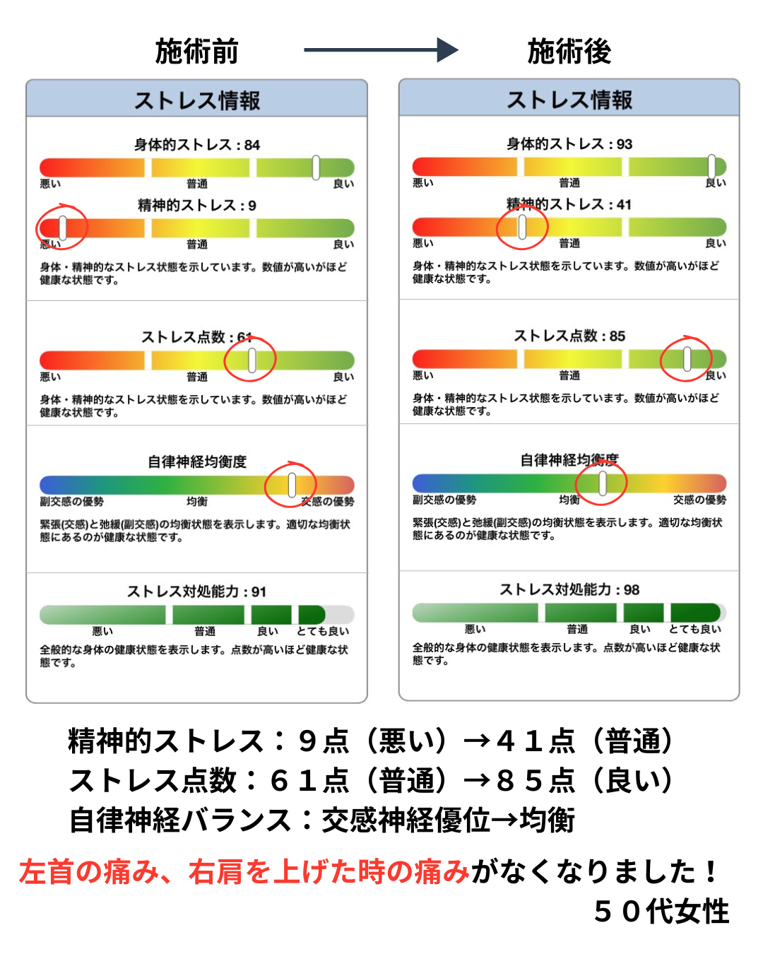 その結果が、右側(施術後)のデータです。