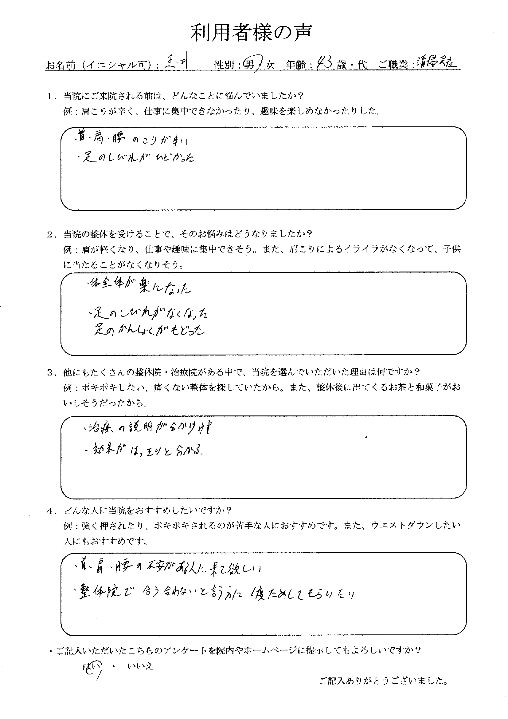 「こんな整体初めて受けました!」